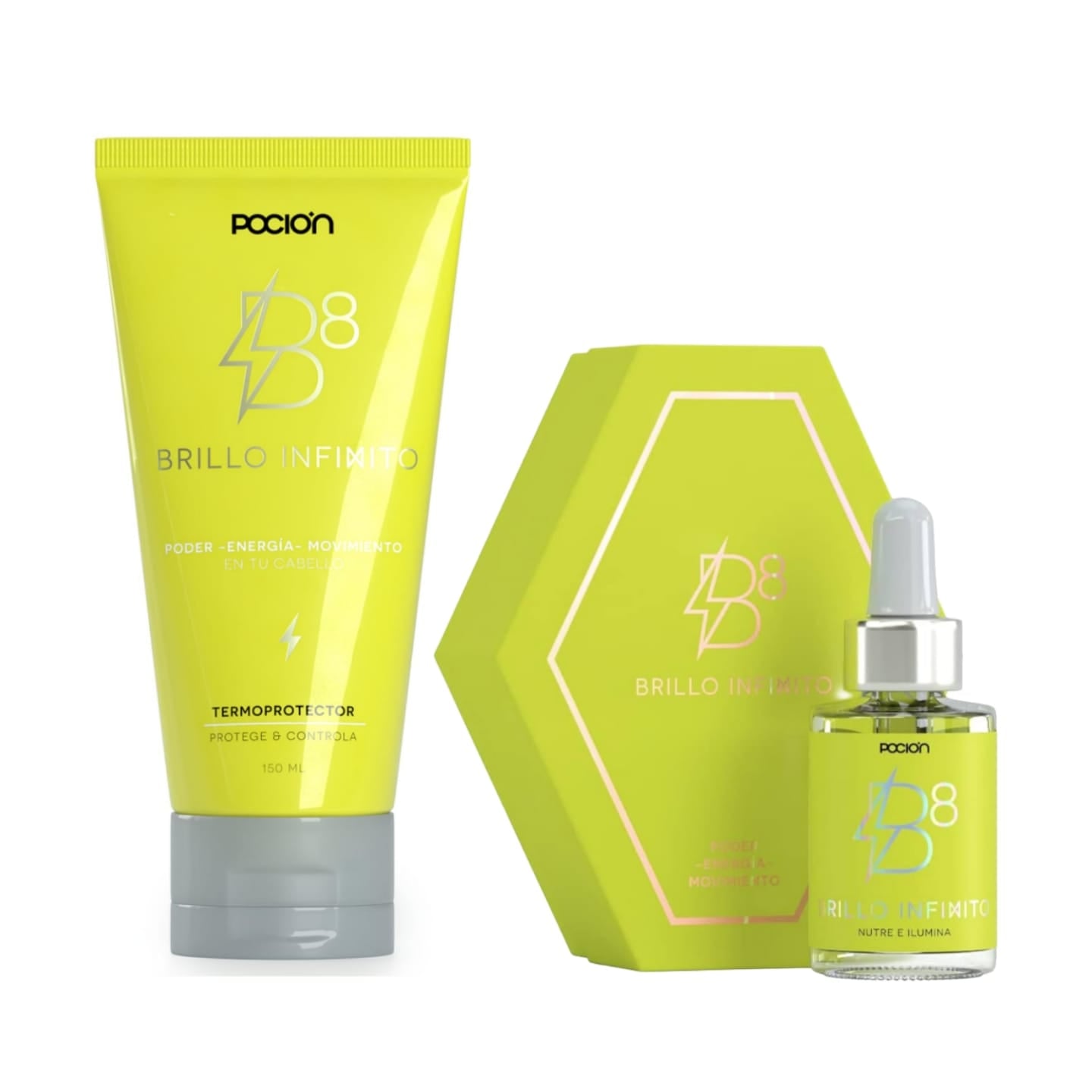 Precio regular $48.50Precio en oferta $48.50 Precio regular $0.00Precio unitario / porKIT BRILLO INIFITO LA POCIÓN (TERMOPROTECTOR+ ÓLEO CAPILAR MULTIFUNCIONAL) B8 Termoprotector, nos brinda la riqueza de la gran biodiversidad amazónica plasmada en los activos más podeross para...