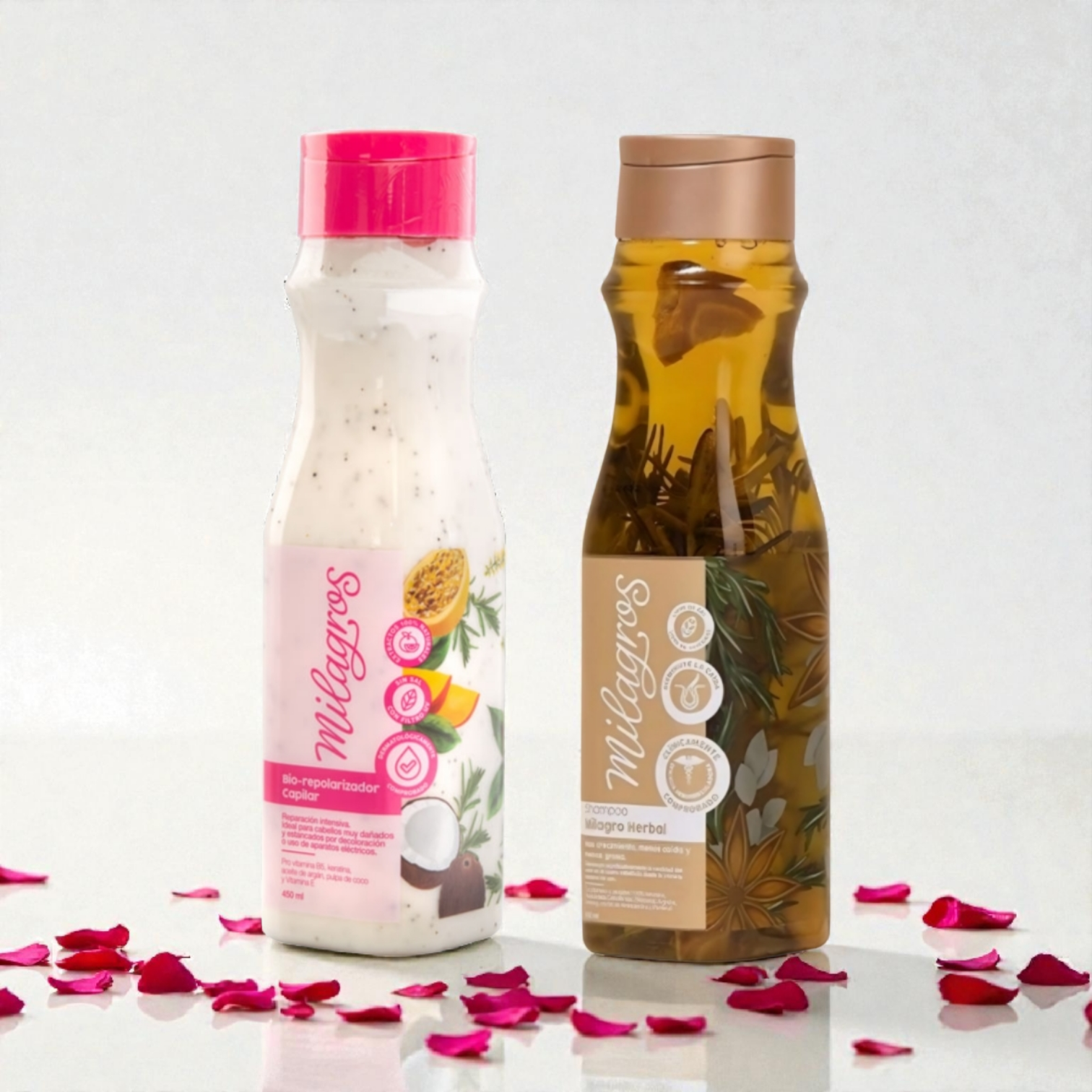 Contenido del Kit: Shampoo Herbal y Biorepolarizador Capilar